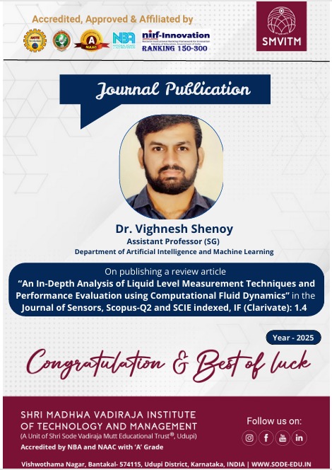 We are delighted to share that Dr. Vighnesh Shenoy, Assistant Professor in the Department of Artificial Intelligence and Machine Learning at SMVITM, has successfully published a comprehensive review article in...