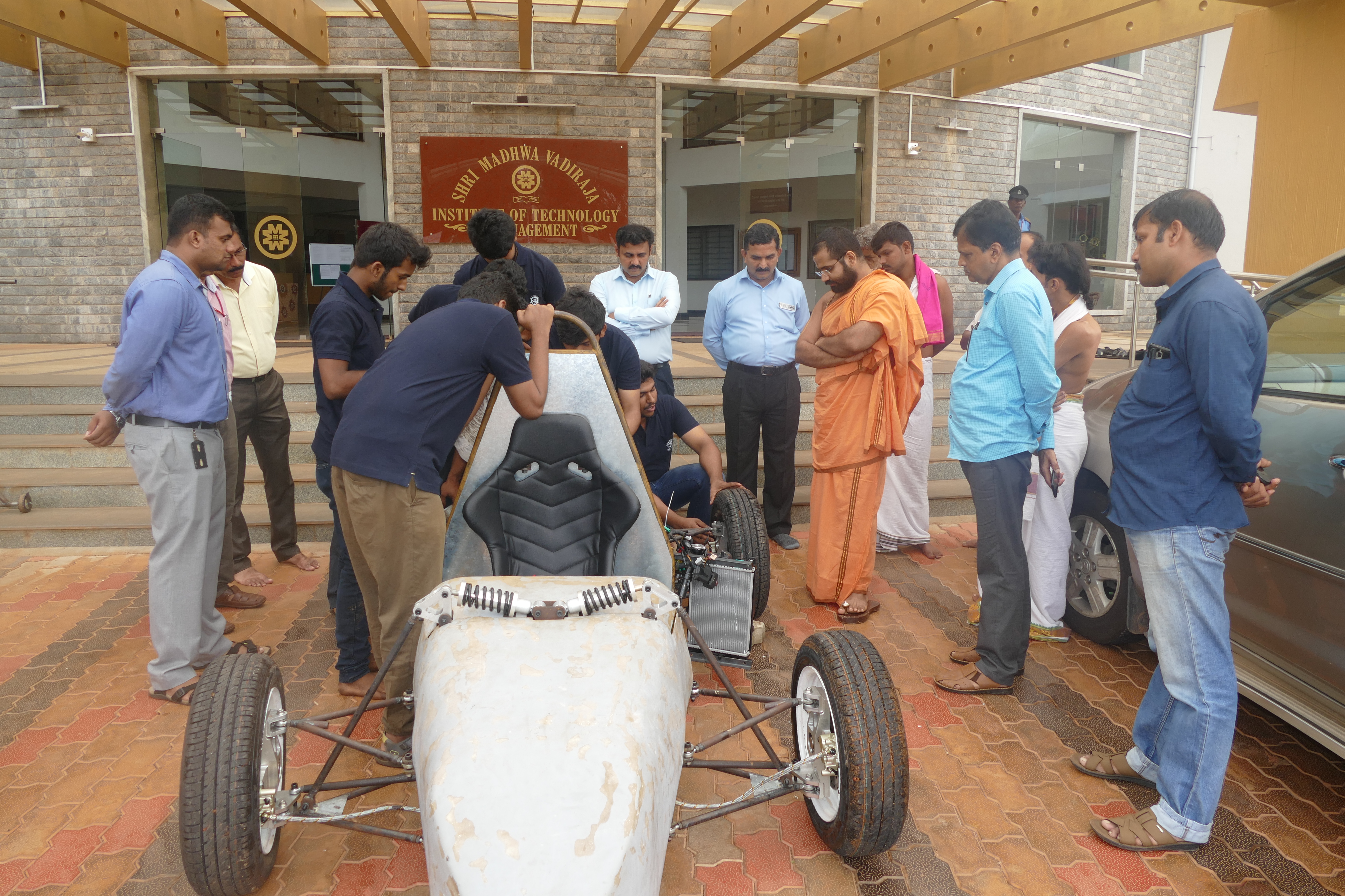 Students explaining about the car to Shri Swamiji